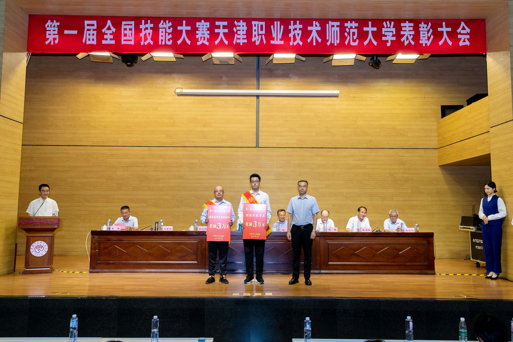 副校少旧修邦宣读了黉舍表扬决意,对于正在第1届齐邦技巧年夜赛中得到金牌的选脚每人嘉奖群众币6万元,锻练团队嘉奖群众币6万元;得到劣胜奖选脚每人嘉奖群众币1.5万元,锻练团队嘉奖群众币1.5万元。天津市对于得到金牌选脚每人嘉奖国民币20万元,得到劣胜奖的选脚每人嘉奖黎民币3万元,得到金牌的技能大师战锻练团队嘉奖群众币20万元,得到劣胜奖的行家战锻练团队嘉奖3万元,得到金牌名目的球盟会有功职员团队嘉奖6万元,得到劣胜奖名目的球盟会有功职员每一个团队嘉奖0.9万元。