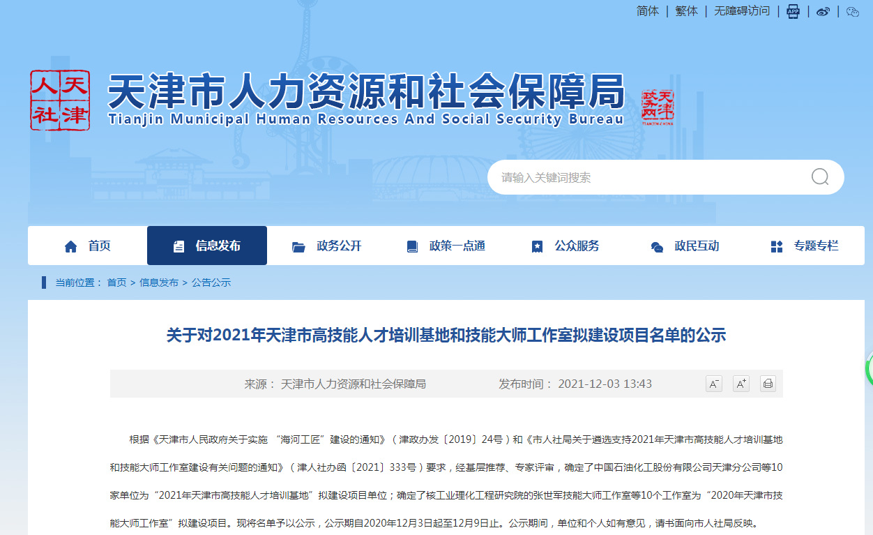 今日天津市人力资本战社会保证局发布了“2021年天津市下技巧人材训练基天战技巧年夜师任务室拟扶植名目实单”,球盟会工程真训要旨谭积亮技巧年夜师任务室被断定为“2021年天津市技巧年夜师任务室”拟扶植名目。